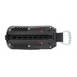 Chaque poche se verrouille en un geste. Pour la larguer, il suffit de tirer sur la poignée en D grise, pensée pour une prise sûre même avec des gants.